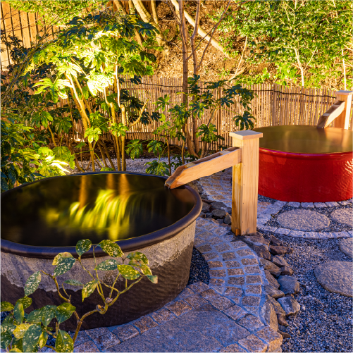 「天然温泉」と「宮水」二種の泉質で極上の癒し。