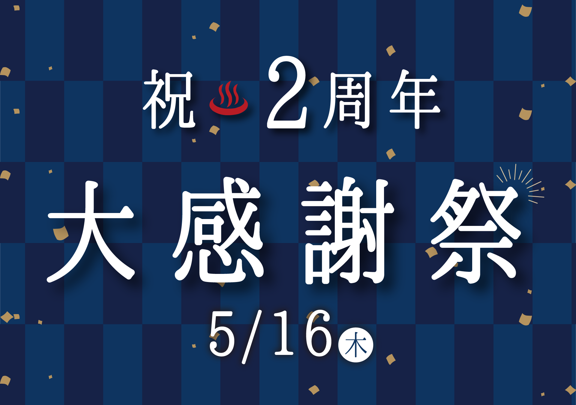 【祝♨2周年 大感謝祭】 期間:5/16(木)
