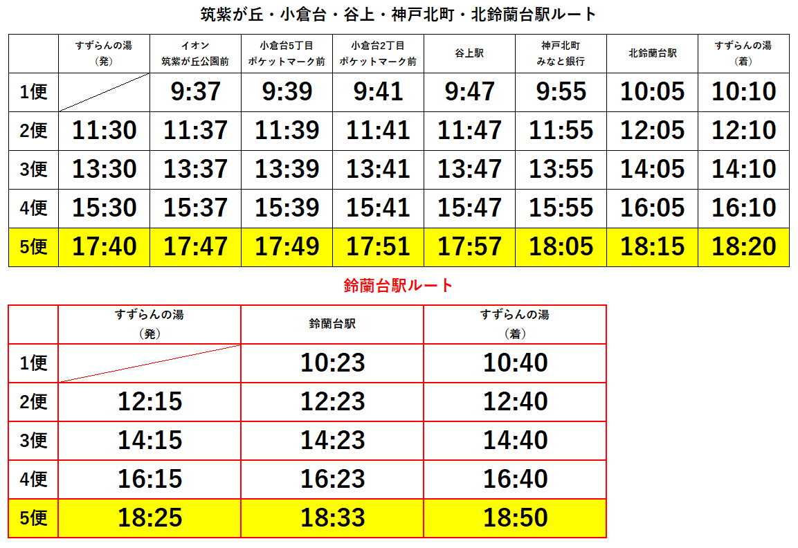 ※すずらんの湯をご利用いただくお客様専用の無料送迎バスです。