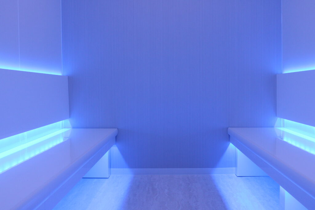 岩盤浴で火照った体を急速に冷やしてくれるこの部屋は、青のライトで部屋全体を照らし、涼しさと幻想的な空間を演出しております。