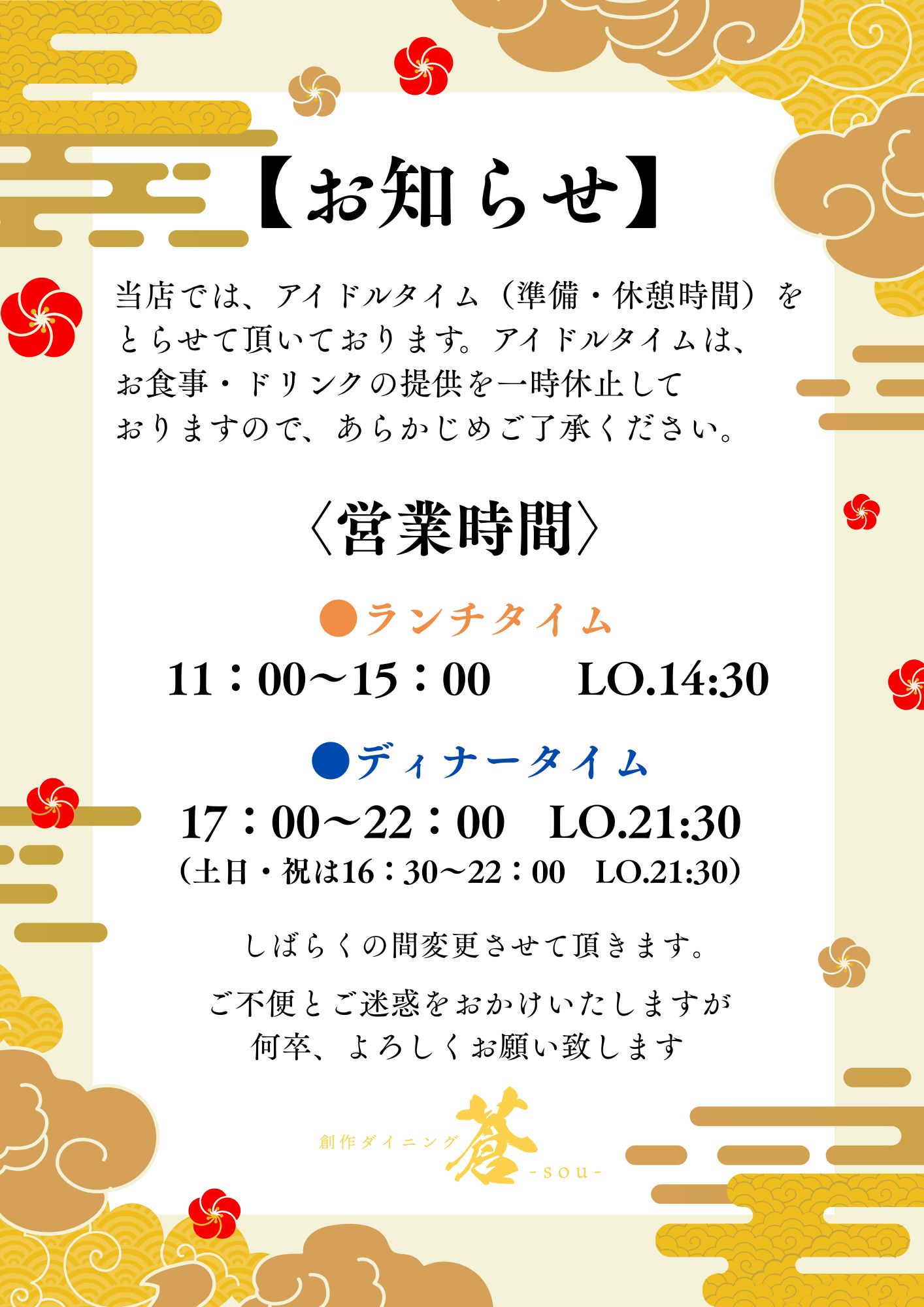 ダイニング蒼よりお知らせ 2025.12.15 Tweet Share Hatena アイドルタイムがございますので、ダイニング蒼 ご利用のお客様はご理解、ご協力の程宜しくお願い致します。 Tweet Share Hatena