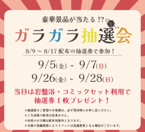 当日は岩盤浴利用のお客様に抽選券1枚を