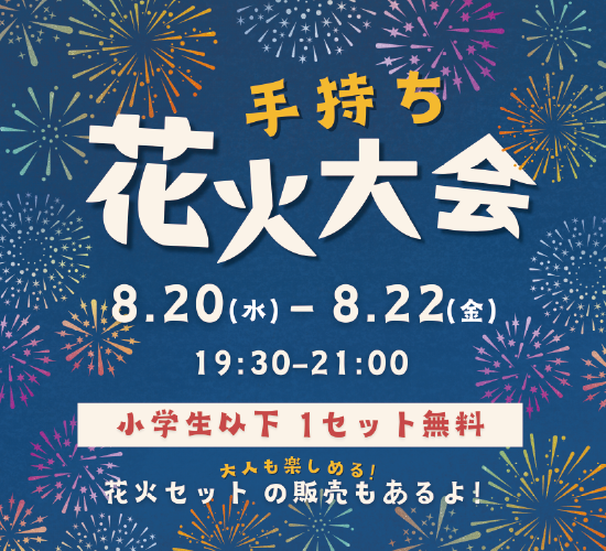 小学生以下のお子様は無料で花火を1セット(5本)プレゼント!