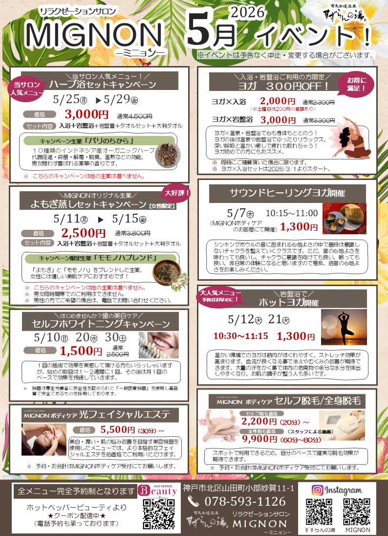 リラクゼーションサロンMIGNON 5月イベントカレンダー