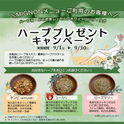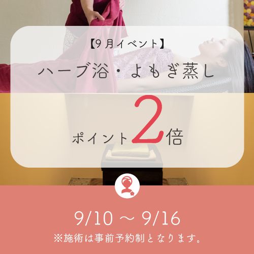 ハーブ浴・よもぎ蒸しポイント2倍ウィーク【9月イベント】