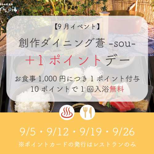 創作ダイニング蒼+1ポイントデー【9月イベント】