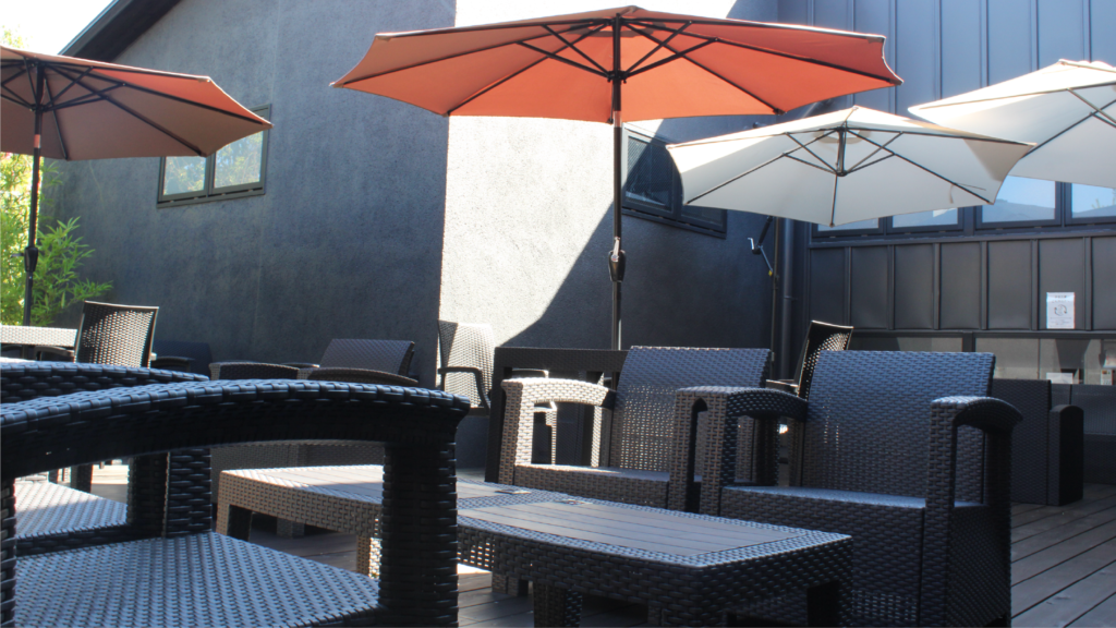 心地よい風を感じながら自然を存分に満喫できる場所として、湯上り処や岩盤浴後の休憩など、どなた様でも無料でご利用いただけます。