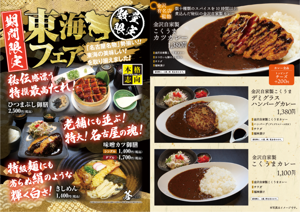 特選たれを使用した本格志向の「ひつまぶし御膳」、老舗にも並ぶ特大の「味噌カツ御膳」、つるりとした食感が癖になる「きしめん」など、名古屋名物をすずらんの湯でもお楽しみいただけます!