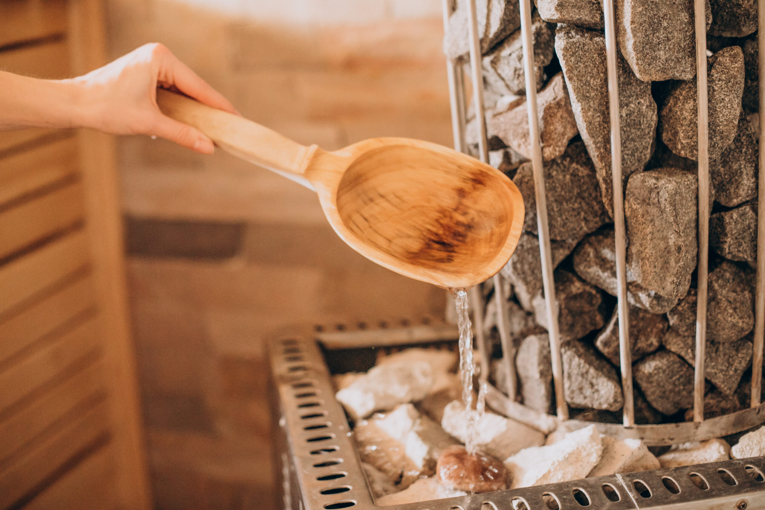 フィンランド伝統の入浴法で、白樺の枝葉を束ねた「ヴィヒタ」で体を叩き、血行促進&リフレッシュ!
