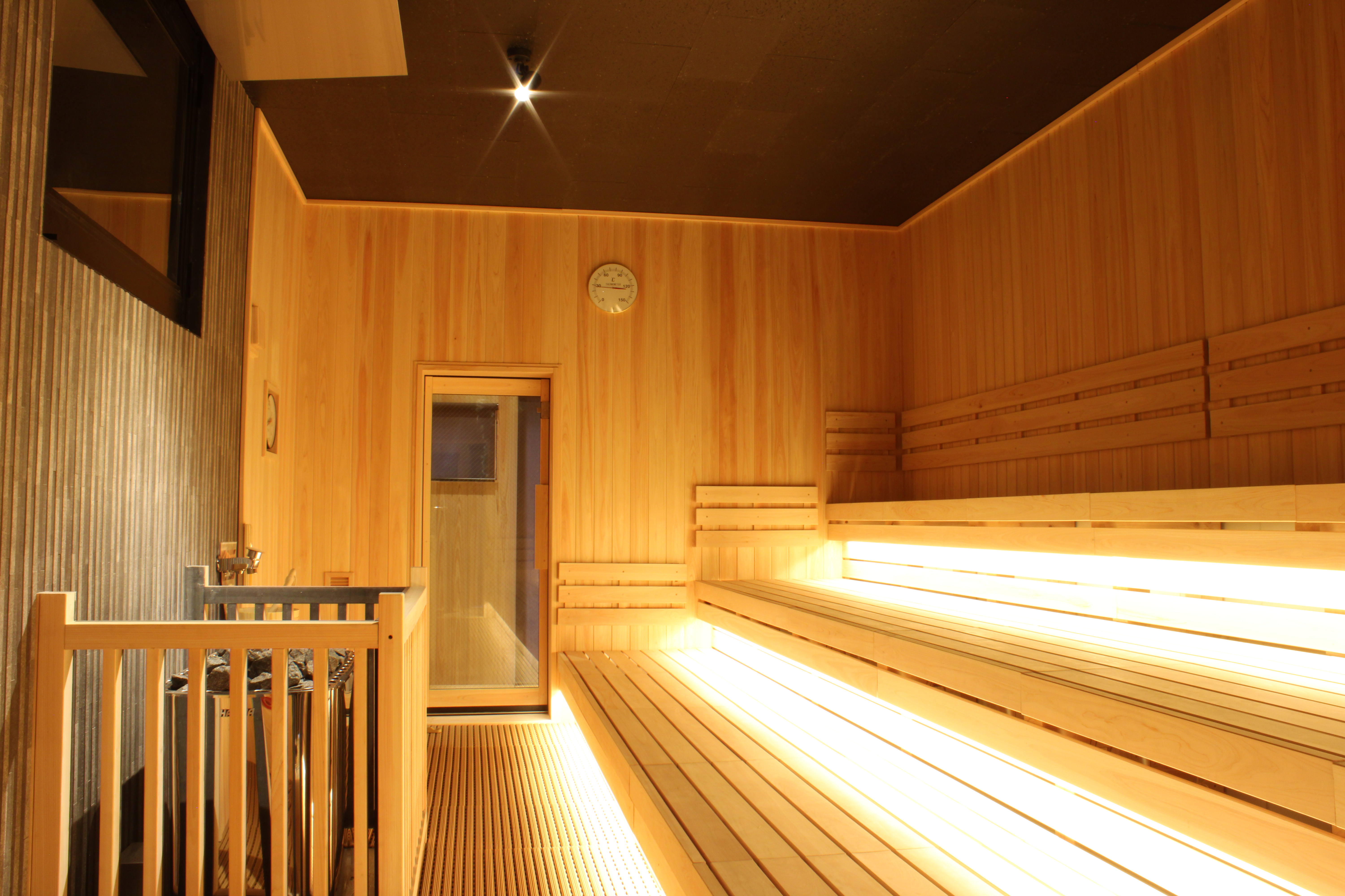 3段のタワーサウナは広々とした設計で、ゆったりとサウナを楽しめます。