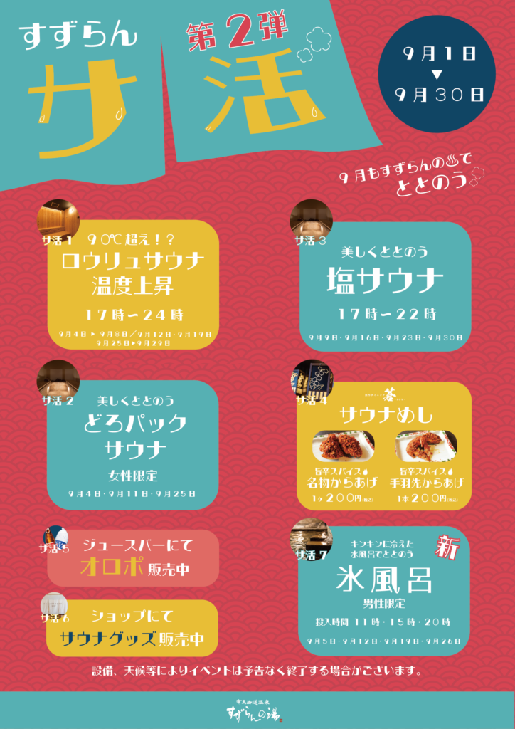 17時~22時の間、スチームサウナにて塩サウナが体験できます!