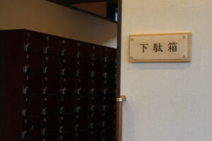 3・玄関右側の下駄箱にて靴をお預けになり「下駄箱の鍵」を持ってロビーへお進みください。