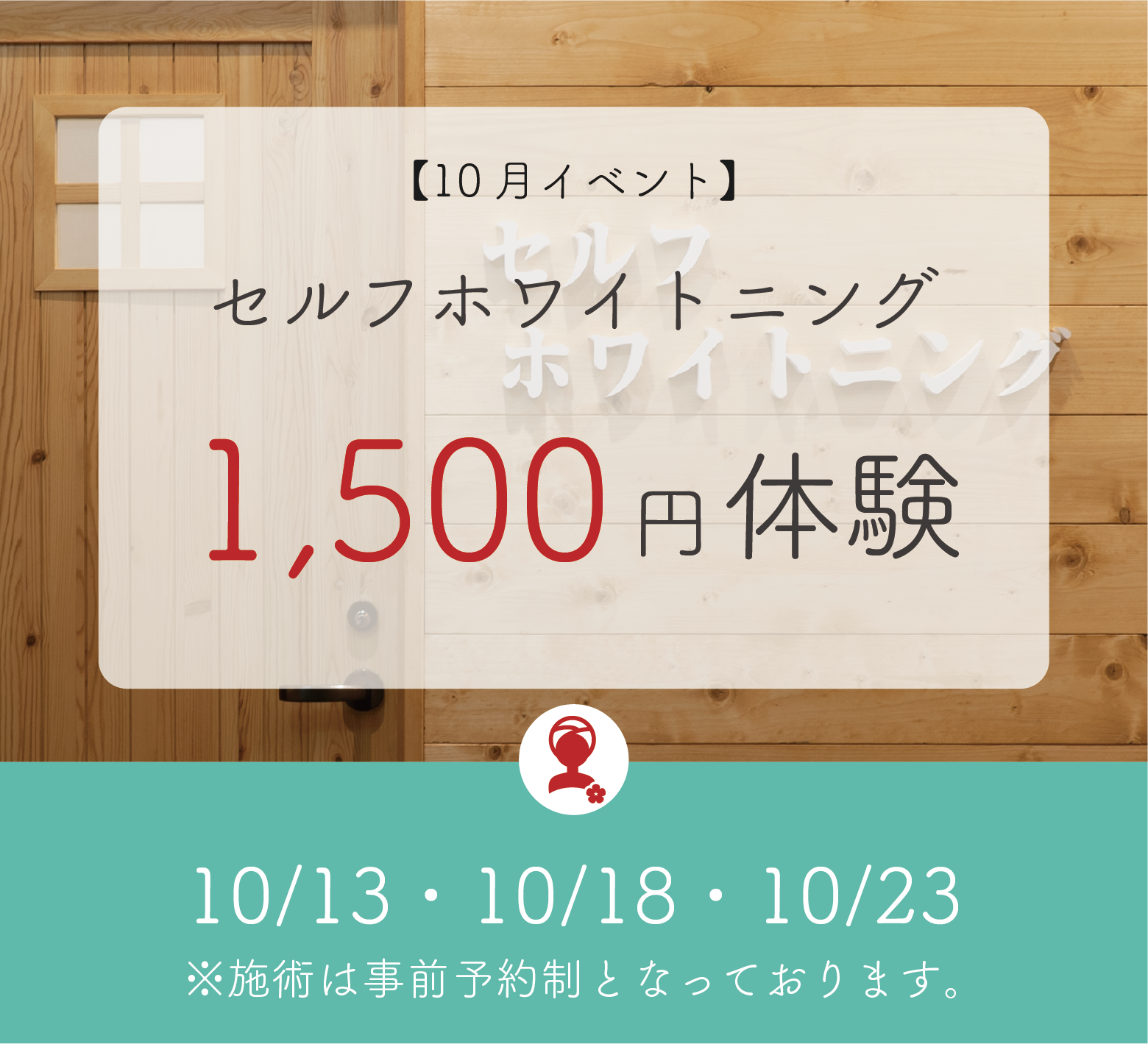 セルフホワイトニング1500円体験キャンペーン【10月イベント】 2023.09.29 Tweet Share Hatena 10/13・10/18・10/23 通常2500円のセルフホワイトニングが 1500円で体験できるお得なキャンぺーンを実施! ※施術時間は約30~40分程度となります。 ご予約はお電話またはホットペッパービューティから ポイントが貯まる、使える! ⇩ホットペッパービューティからの予約はこちら⇩ ※イベントは、設備メンテナンス・天候などにより日程変更、中止する場合がございます。 Tweet Share Hatena