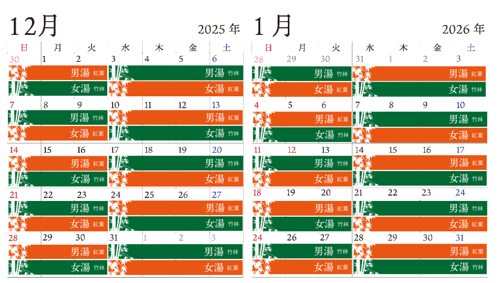 ※入れ替えは、設備点検等でカレンダーと異なる場合がございます。詳しくはTOPページ「お知らせ」をご確認ください。