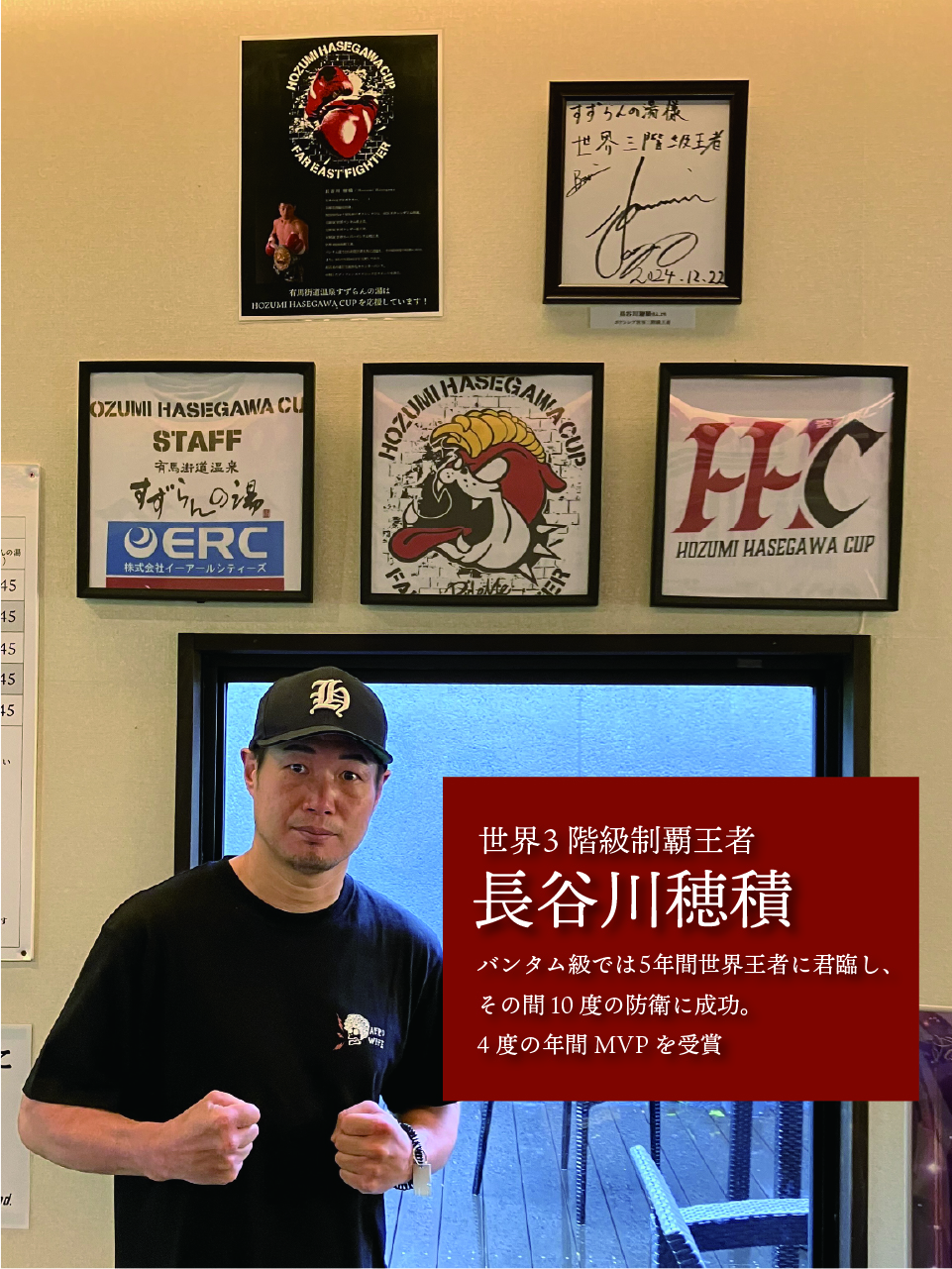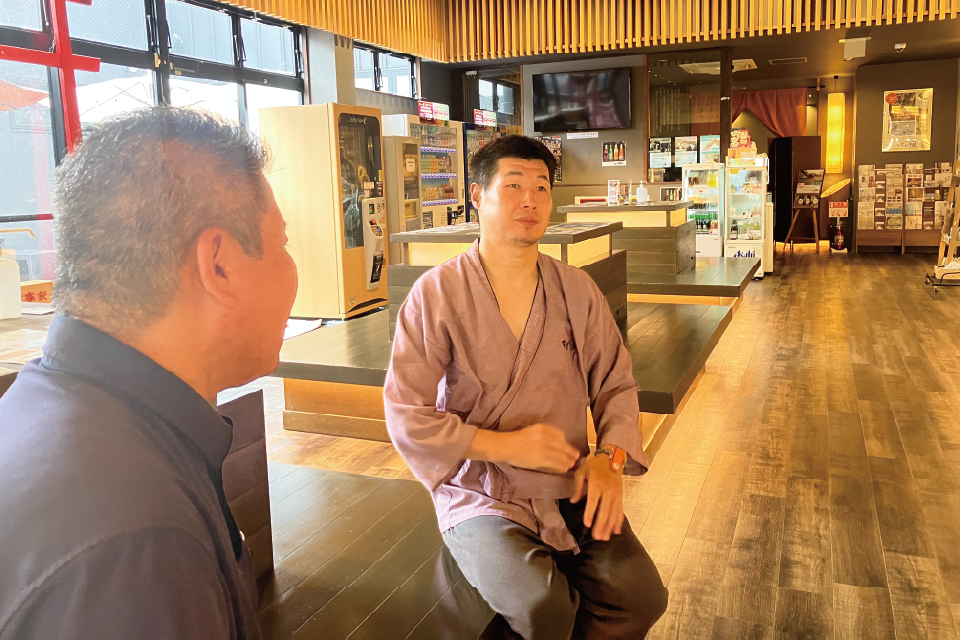 支配人:いえいえ、凄くうれしい事です。確かに長谷川様はボクシングを引退された後でもご自身でフィットネスジムを経営されていたり、野外イベントとして「HOZUMI HASEGAWA CUP」や先日は井上尚弥選手等の試合のコメンテーターなど精力的に活動をされていますよね!そのような中、今回すずらんの湯にお越しになるきっかけは何だったんでしょうか?