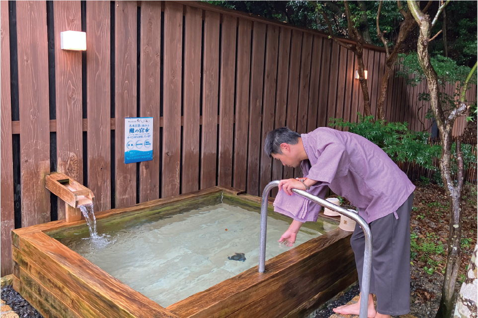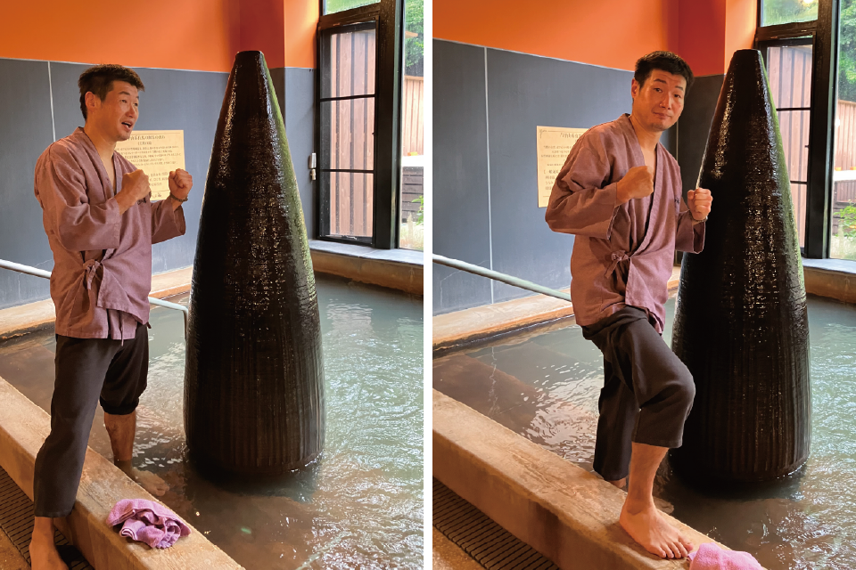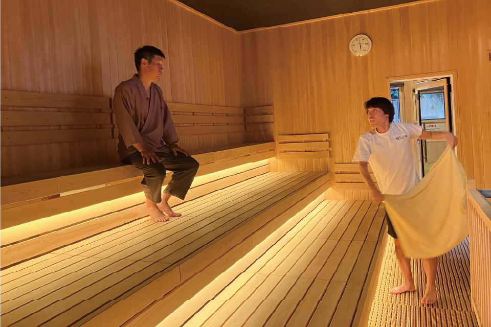 長谷川様:いや~お恥ずかしい。そうなんです。若いころですが、神戸の温浴施設にて熱波師としてアルバイトしていました。この大自然の中のサウナと宮水の水風呂、天然温泉がふんだんに注がれている珍しい造りの浴槽ではサンドバッグに見えたのでシャドーボクシングをしちゃいましたよ。エンタメ性もありすずらんの湯は間違いなく世界チャンピオンですよ