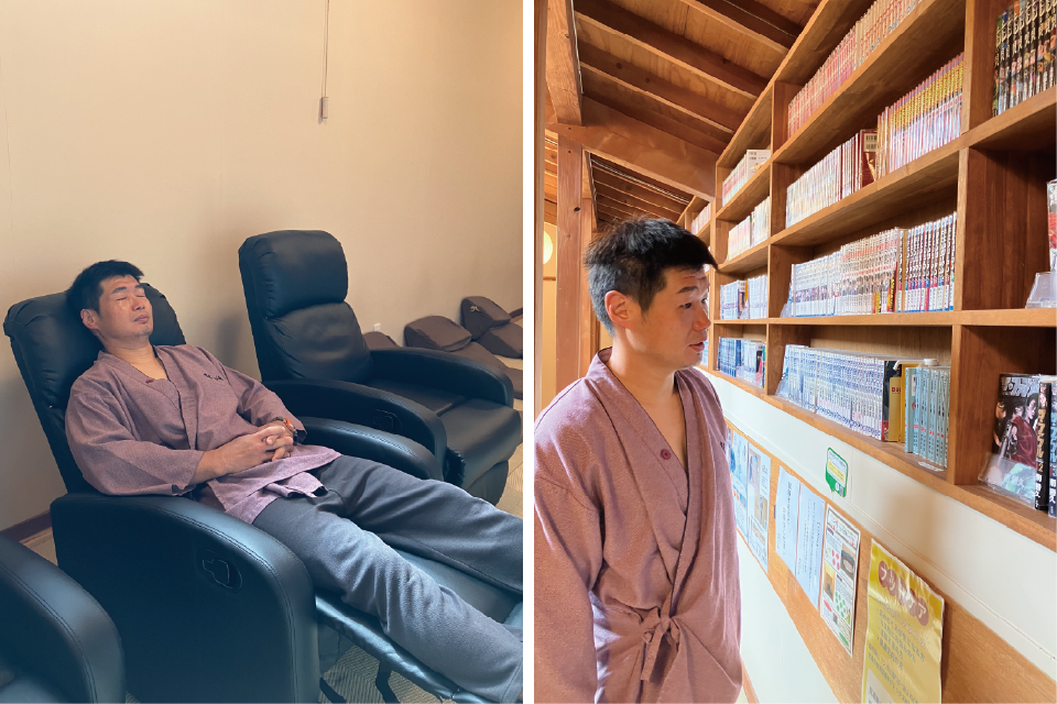 長谷川様:お風呂はほんと良かったし、セットになっていた岩盤浴は4種類もあって専用のクールダウンルーム、2階には漫画コーナーまであり、1日リラックス出来ますね!