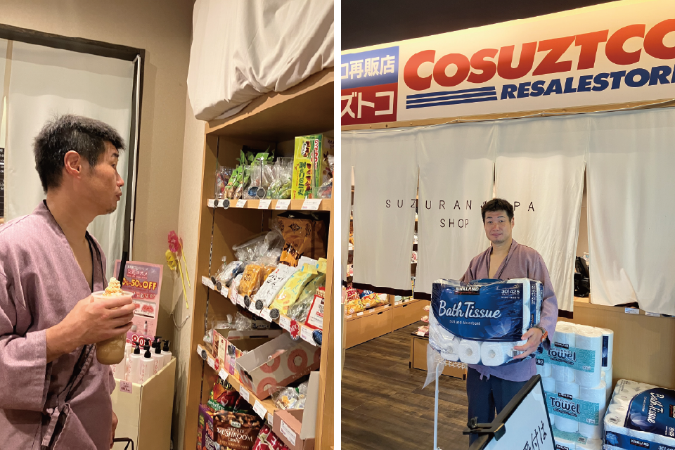 支配人:びっくりさせてしまいましたね!元々神戸のお土産コーナーとして有馬温泉の名物金泉焼や子供に大人気の駄菓子を沢山取り扱っていました。今年に入りオーナーのアイデアによりコストコ再販店をやってみよう!と決まり年会費も要らない身近で便利な「コスズトコ」をオープンさせました。コストコでは量が多すぎる事から、当館では人気のアイテムをチョイスして小分け販売をしているので、サラリーマンの方やシニアのお客様に大変ご好評を頂いております。