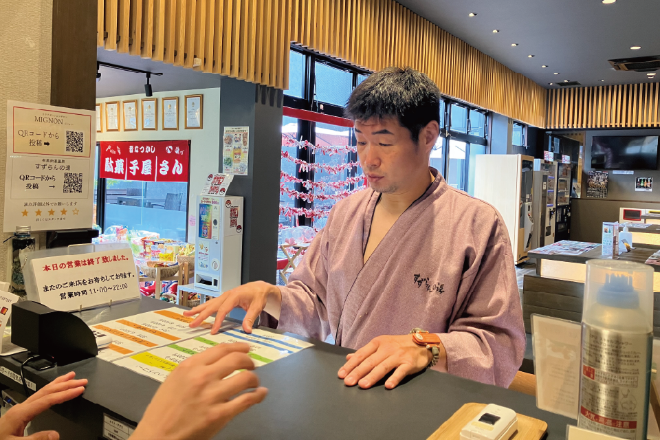 支配人:とんでもございません。すずらんの湯はリニューアルオープンしてやっと3年が過ぎたばかりで、まだまだPR不足でもあり、これからも長谷川様のパワーをお借りしながら【常に進化し続ける】をモットーに頑張って参りますので、どうぞ宜しくお願い致します。