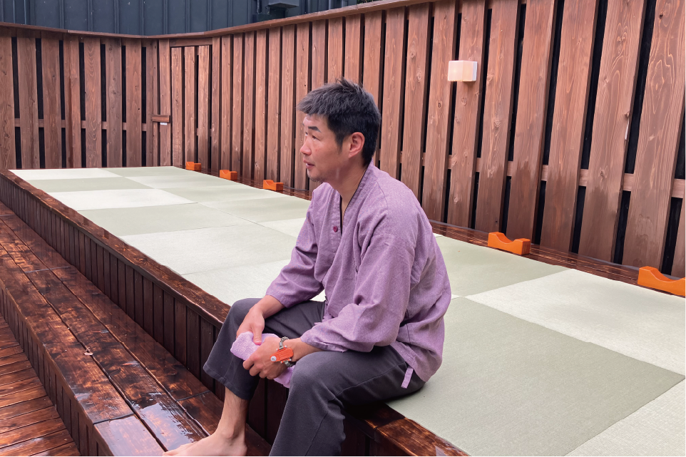 長谷川様:いつもすずらんの湯さんには大会の協賛をいただいたりと、ボクシングを通じて凄く身近に感じています。本当にありがとうございます。そして当フィットネスジムの会員様を始め、ジムトレーナーからもすずらんの湯さんの話は良く耳にしていて、この度森の中にサウナが出来たって伺ったので、サウナ好きの僕には居ても立っても居られなくなり夢が叶いました。